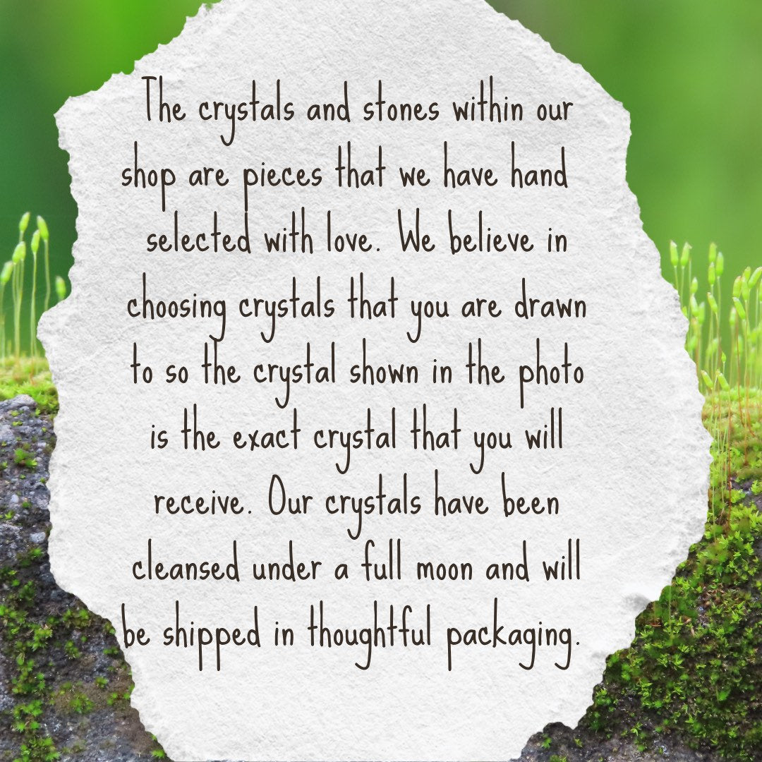 💎The crystals and stones within our shop are pieces that we have hand selected with love. We believe in choosing crystals that you are drawn to so the crystal shown in the photo is the exact crystal that you will receive. Our crystals have been cleansed under a full moon and will be shipped in thoughtful packaging.