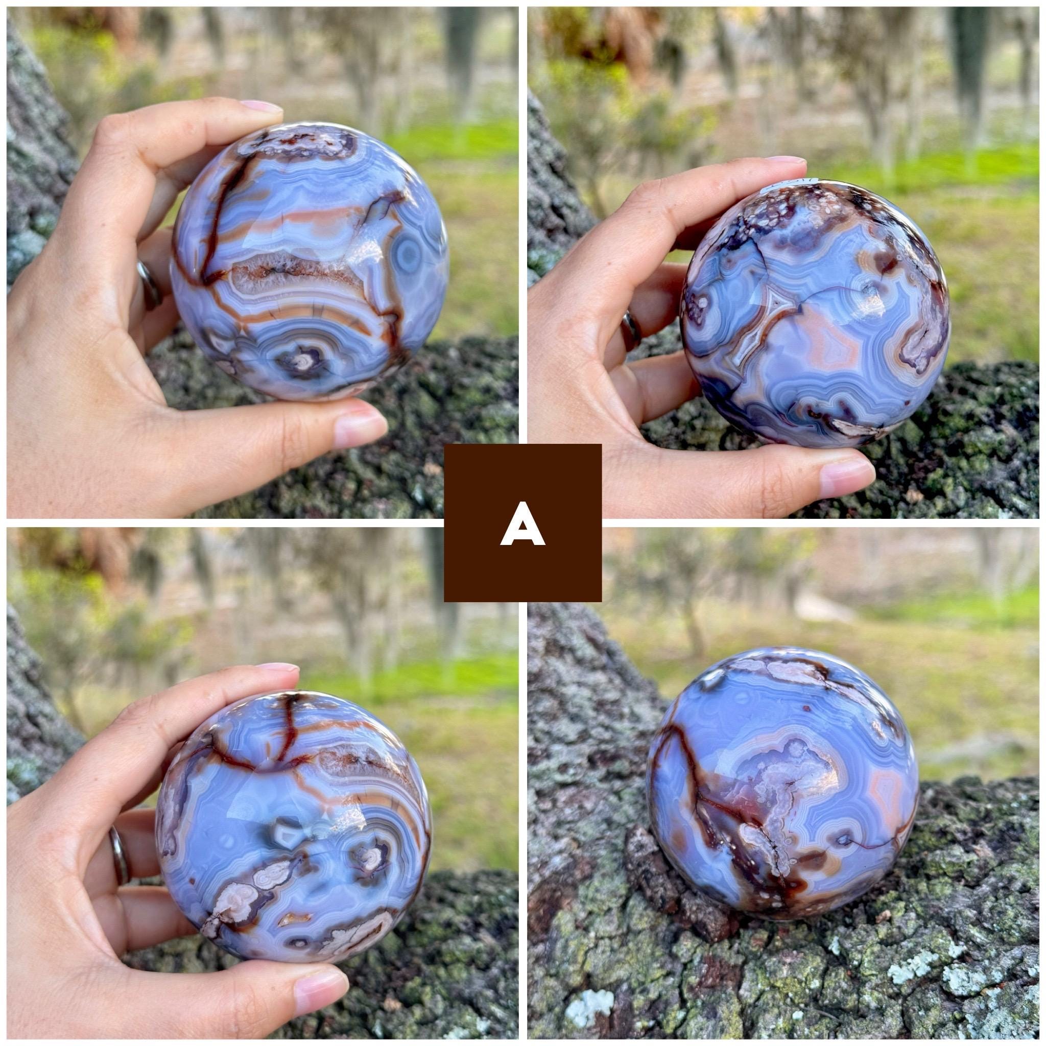 Each sphere shown is the exact piece you will receive, carefully photographed in natural light to highlight its unique banding and inclusions.