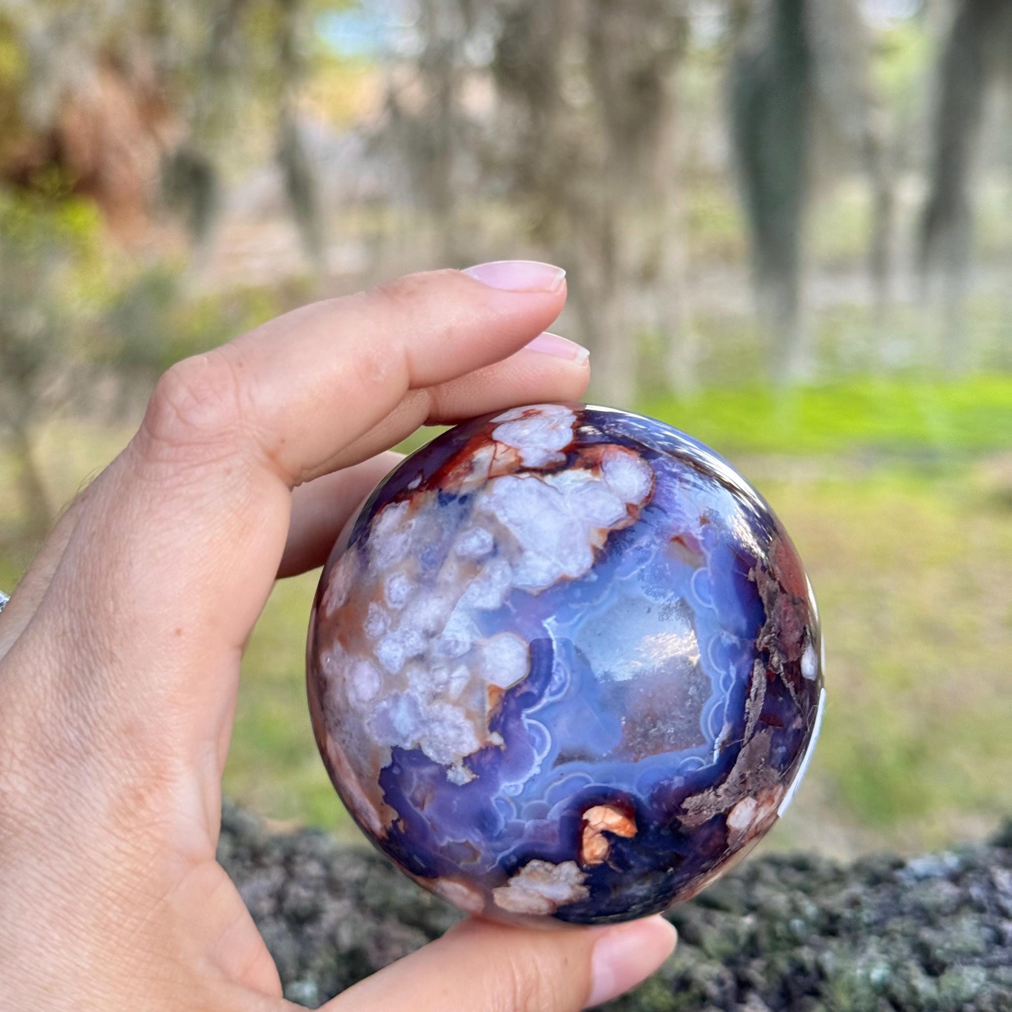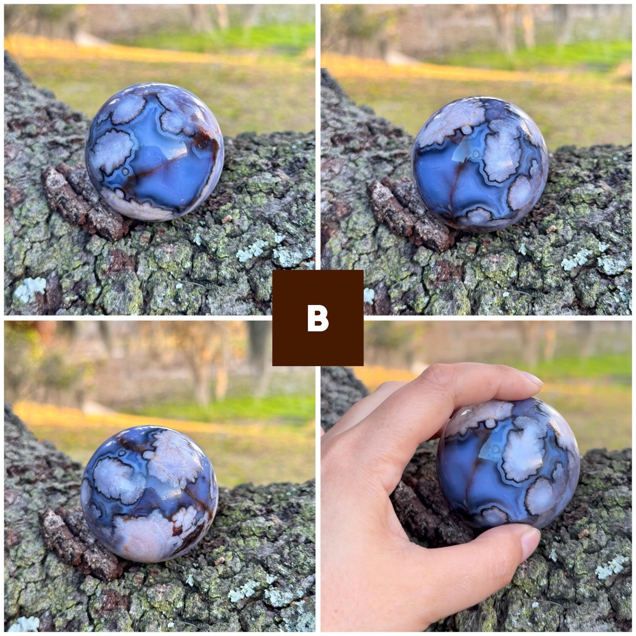 Choose your favorite blue flower agate sphere